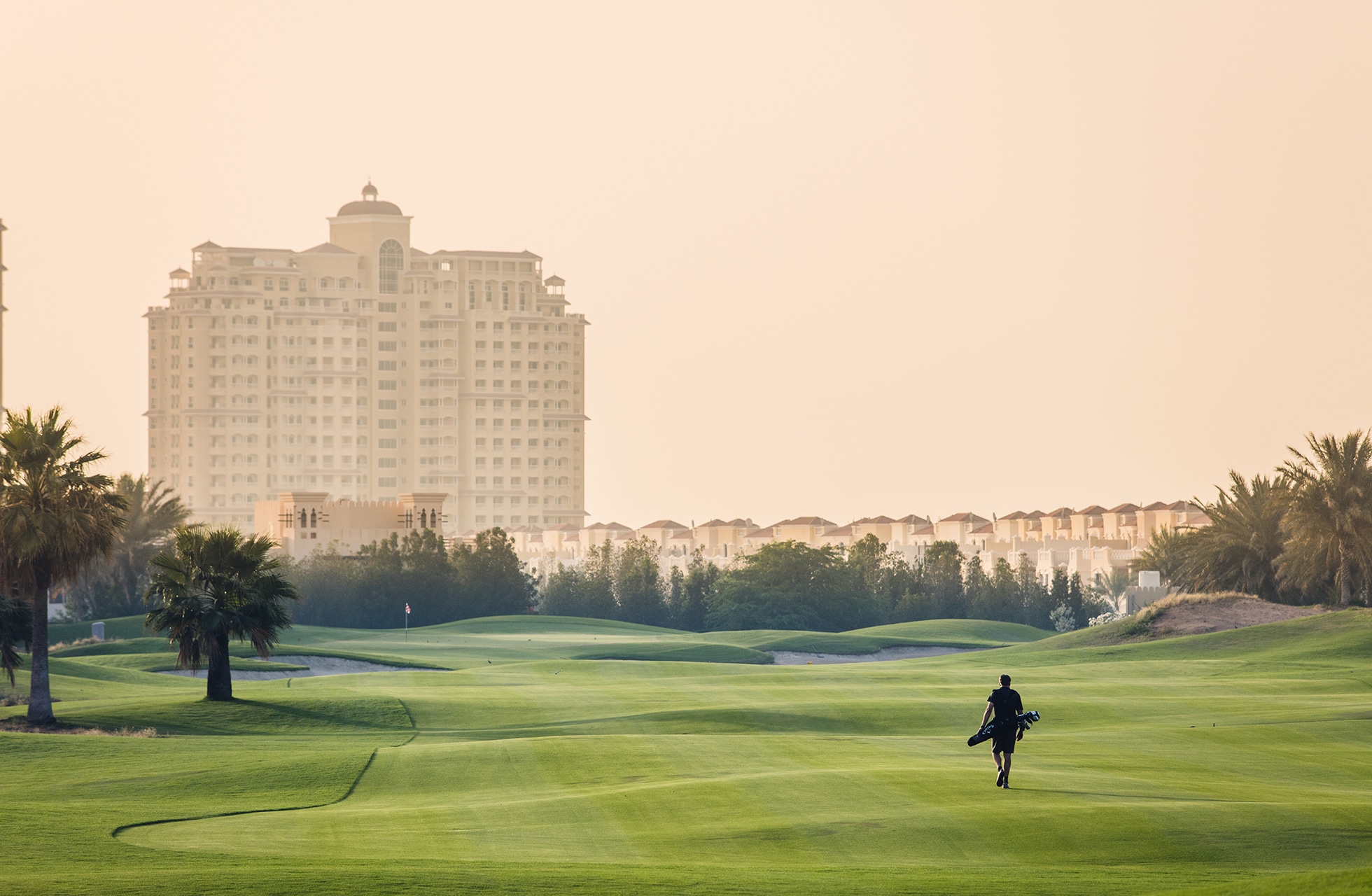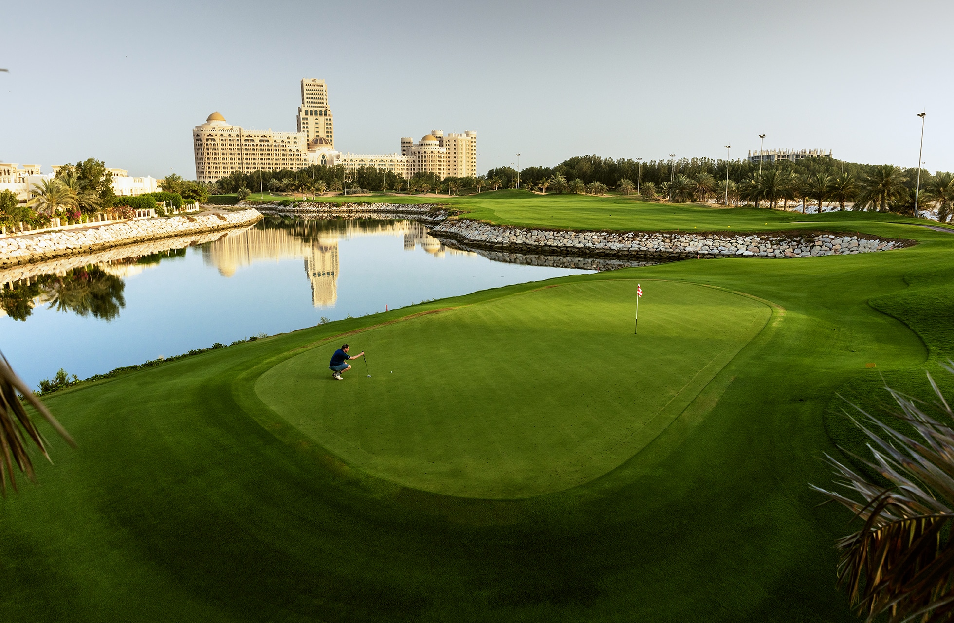 Det mörknar snabbt på kvällarna och för att förlänga dagarna och möjligheten till golf är banan försedd med strålkastare som gör det möjligt att njuta av banan även kvällstid. Den upplysta banan består av hål 1-7 och hål 17-18, vilket ger en spännande och annorlunda kompositbana på 9 hål under stjärnorna. Signaturhålet är förmodligen det 18:e som är en tuff par 5:a med vatten på hela högersidan och greenen direkt utanför klubbhusets uteservering. På det 2:a och 3:e hålet har man det mäktiga Waldorf Astoria-hotellet i bakgrunden som blir om möjligt ännu mäktigare när det är upplyst på kvällen. Ett annat fint parti av banan är hålen 10 -13 som går runt en havslagun.