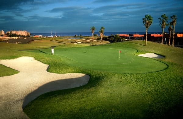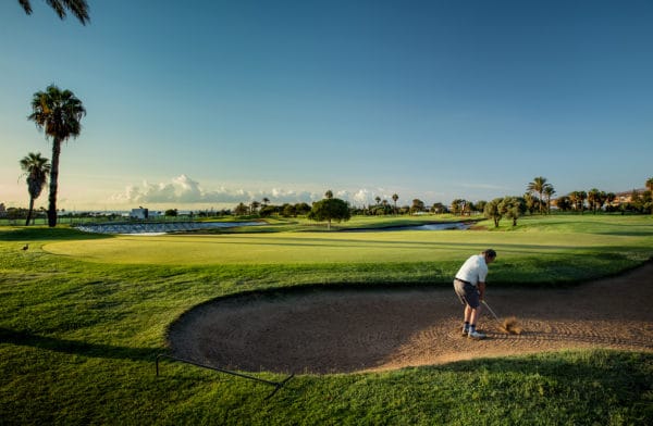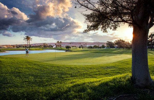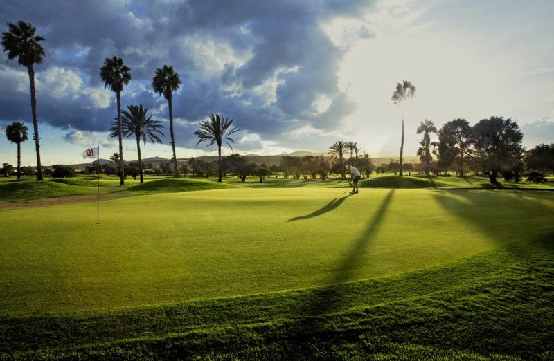 Vid ankomsten till Fuerteventura Golf möts ni av det pampiga hotellet som är byggt i klassisk haciendastil. I den vackra hotellbyggnaden ligger även klubbhuset och restaurangen. Även om Fuerteventura Golf ligger mer eller mindre granne med Salinas Golf så är det helt olika karaktär på banorna. Fuerteventura Golf är en klassisk golfbana där fairways kantas av palmer och banan har relativt små greener. Det gäller att hålla tungan rätt i mun redan på första hålet, en kort par 4 med en bäck som korsar fairway, och en väl inbunkrad green. Spela klokt från tee för att undvika bäcken och fairwaybunkrarna! Strategiskt spel gäller faktiskt över hela banan. Det finns doglegs där man kan chansa och vinna en hel del men det kan bli dyrköpta metrar om man går out of bounds. Fuerteventura är en flack bana som är lätt att gå förutom den tuffa backen upp till hål nummer 17. Även om vi klassar både Fuerteventura och Salinas som semestergolfanläggningar så är de inga dåliga banor. Fuerteventura Golf var värd åt Europatouren 2004 och då slutade Golf Plaisirs operativa chef Mattias Damberg på samma plats som Henrik Stenson, dock långt från toppen med 6 över par.