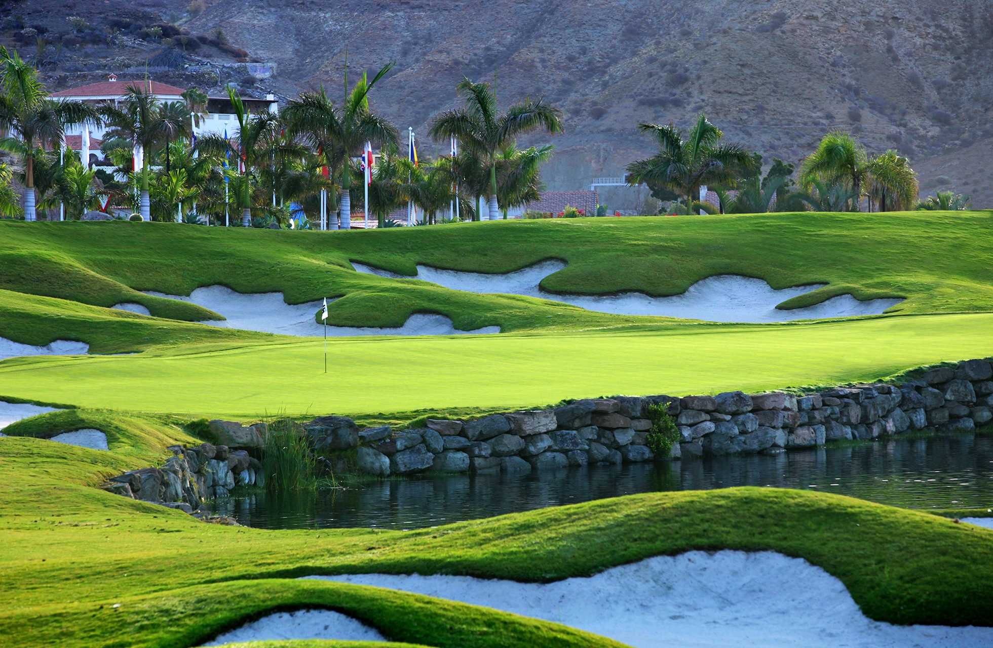 Det finns egentligen bara två vattenhinder som är i spel. Hål 16 är ett fint par 3-hål där det är rejält med vatten mellan tee och green. Banan mäter hela 5953 meter från gul tee men då ska man ha i åtanke att det är par 73 och endast tre stycken par 3-hål. Detta är den golfbana som är populärast bland alla de som har sitt semesterboende på Gran Canaria. Förutom att det är en mycket trevlig golfbana så är nog restaurangen en bidragande orsak till banans popularitet. Maten är utmärkt och från restaurangens uteservering har man en fin utsikt över både de som ska slå ut på hål 1 och de som slår sina avslutande puttar på hål 18.