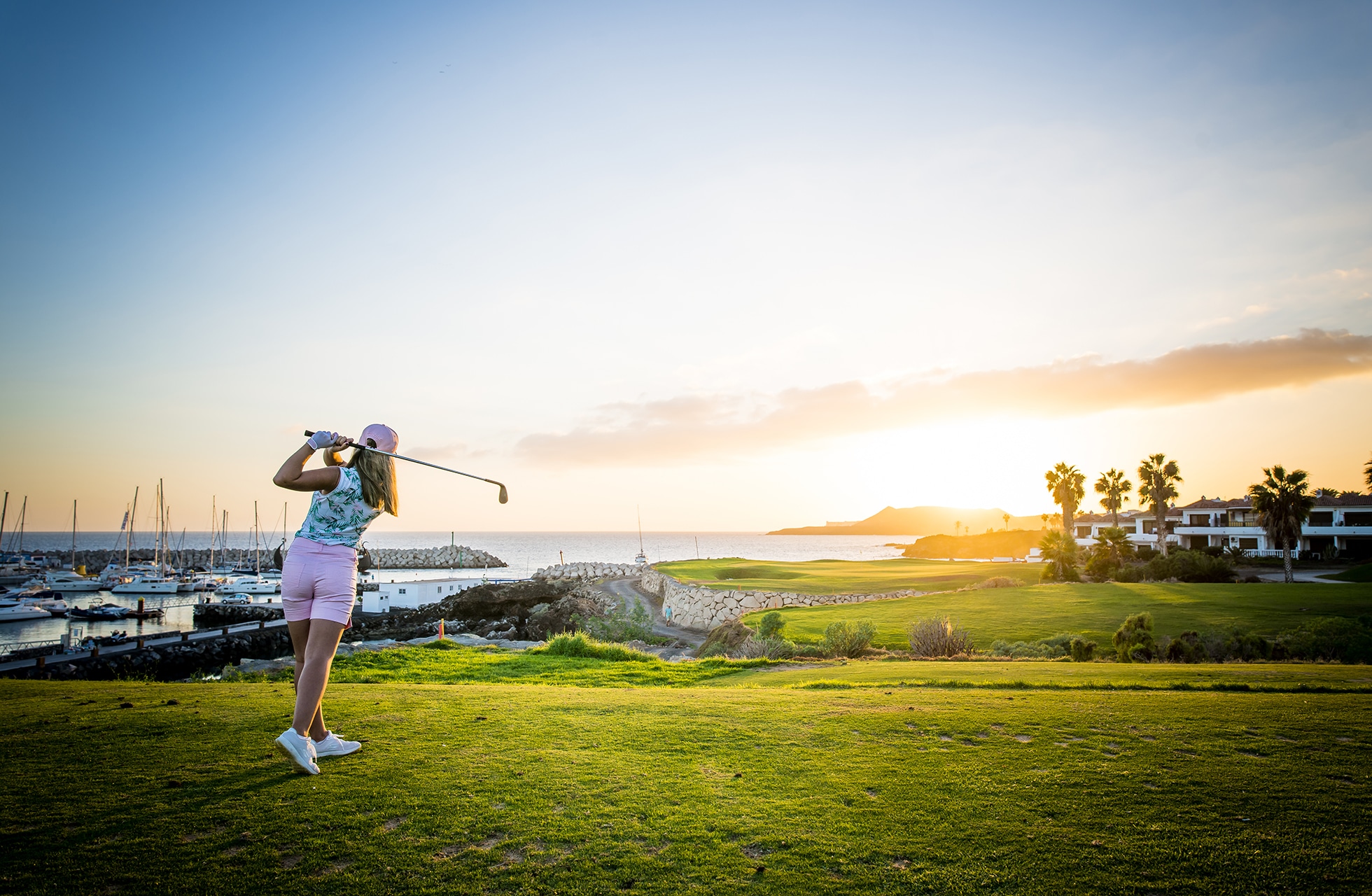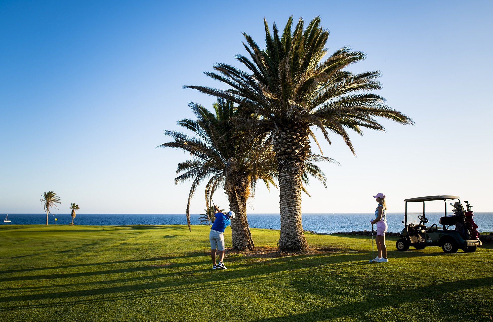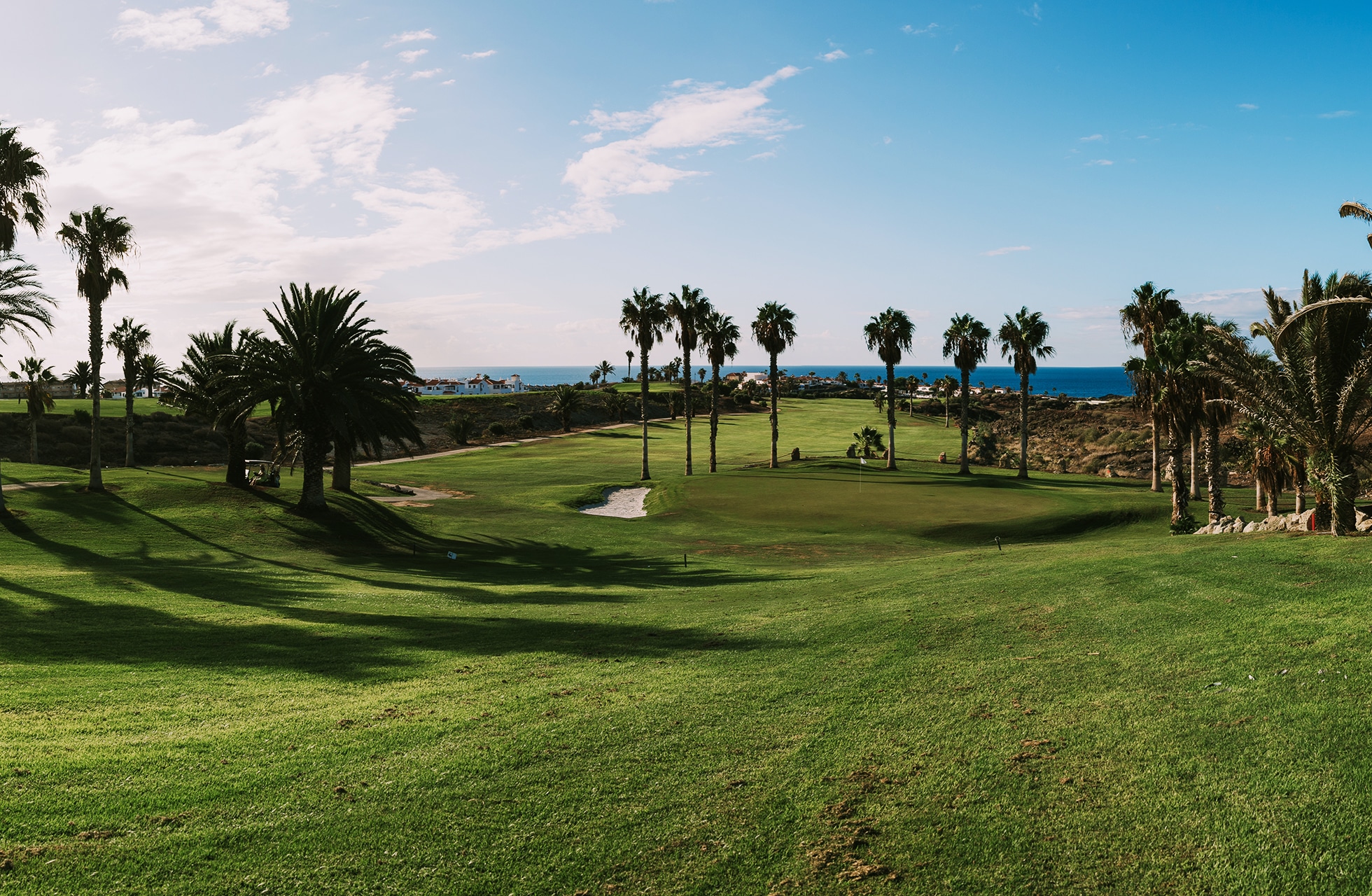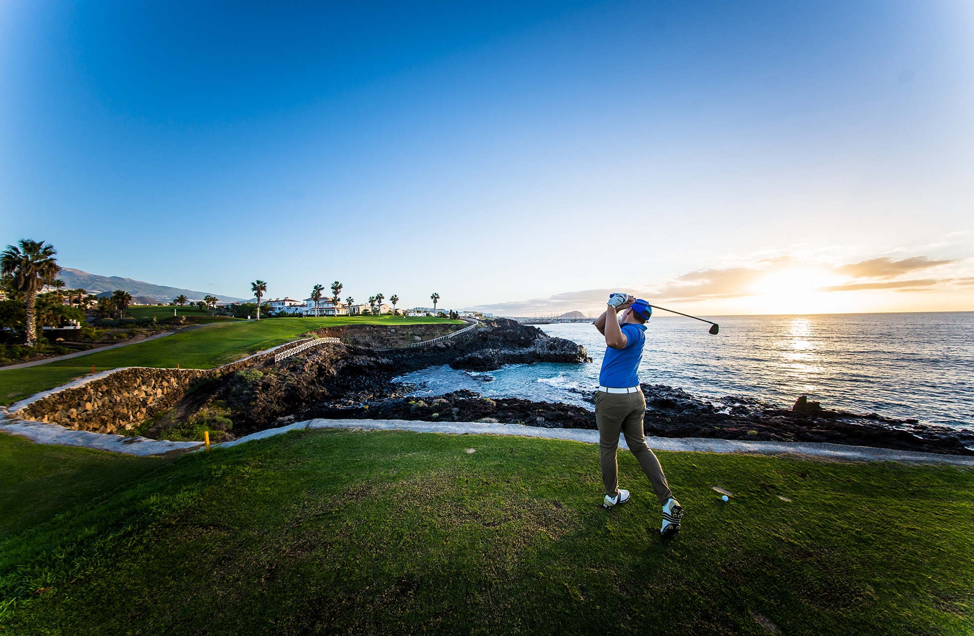Det är något speciellt med golfbanor som går hela vägen ned till havet. Amarilla Golf Club är en sådan golfbana och här kommer man ända ner till havet vid två tillfällen under ronden. Den välrenommerade golfbanearkitekten Donald Steel har på ett snillrikt sätt skapat vyer antingen mot havet eller mot Spaniens högsta topp Teide. Golfbanan kantas av en hel del hus utan att det direkt är störande även om man skulle vara lite yvig med drivern. Det finns ett antal nyckelhål där man får koncentrera sig och fairway känns smala och greenerna mycket snabba. Signaturhålet är utan tvekan hål nummer 5 som är ett kort och fint par 3-hål. Hålet mäter endast 99 meter från gul tee men det gäller att slå ett riktigt bra slag då man är längst ned vid Atlanten och bollen måste färdas hela vägen upp på green annars är den blöt. Det finns två bunkrar i bakkant av greenen så en klubba extra kan vara ok om man är säker på bunkerslaget tillbaka mot havet. Det är kort men just här direkt längs Atlantkusten så är vinden en viktig faktor så 99 meter kan snabbt förvandlas till något helt annat. Det är många som anser att detta kanske är ett av de bättre och mer utslagsgivande golfhålen på Kanarieöarna.