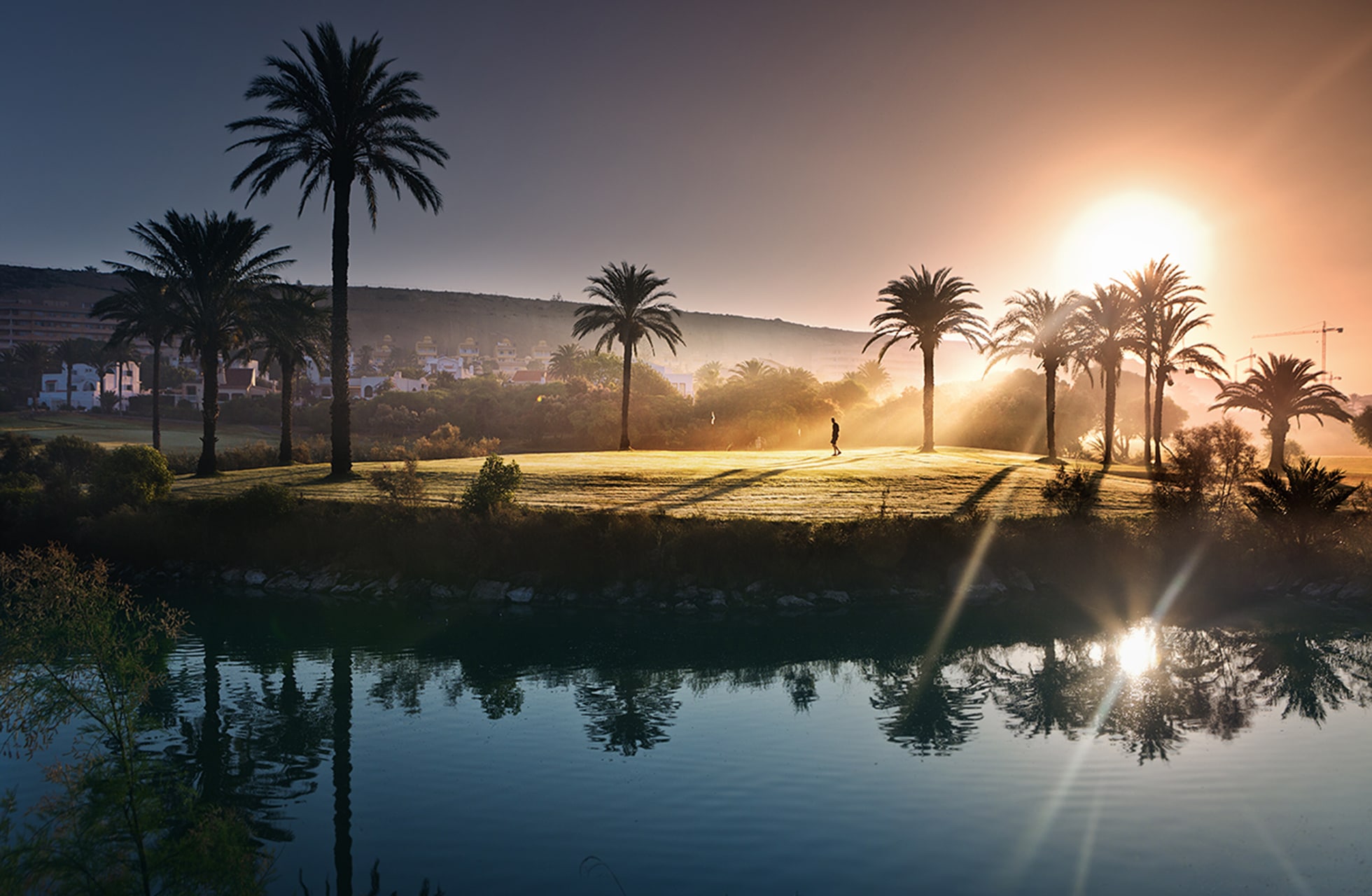 Almerimars golfbanor ligger vackert med Medelhavet på ena sidan och Sierra Nevadas snöklädda bergstoppar på den andra. Här finner du 27 hål av äkta semestergolf när den är som bäst med relativt generösa fairways, en trevlig och varierande layout i parkmiljö som ändå erbjuder många utmaningar. Till de svårare hör signaturhålet nummer 12; ett korthål på 150 meter mot en ö-green helt omgiven av vatten. Riktigt tufft om det spelas mot vinden. Det är med en lättnadens suck man vandrar över bron in mot green om resultatet blev lyckat.
