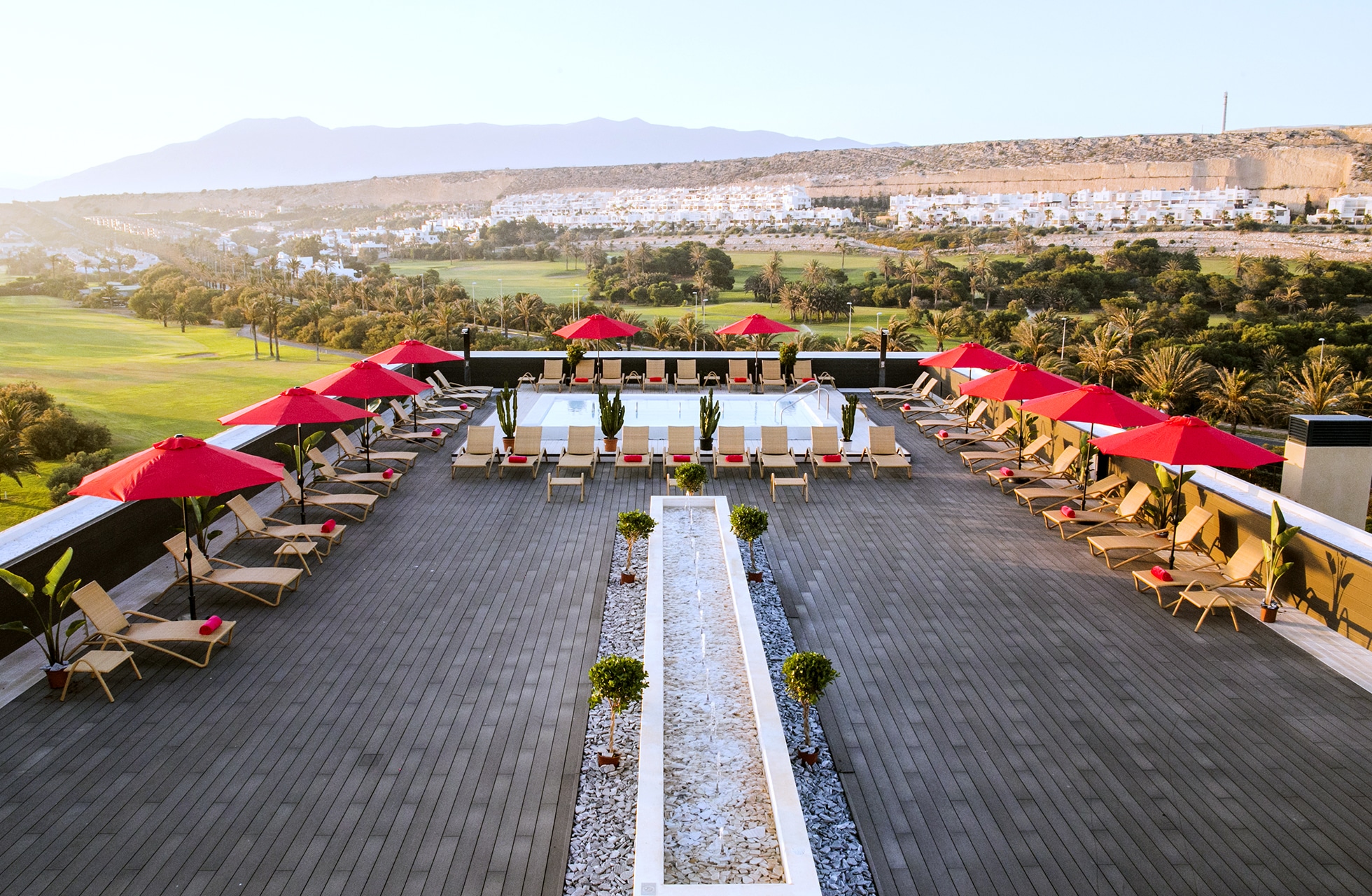 Almerimar Golf Hotel är verkligen det optimala boendet för en avkopplande men golfintensiv semester. Ett modernt 5-stjärnigt hotell perfekt beläget med klubbhuset som granne och marinan på andra sidan gatan. De flesta rum har balkong eller terrass mot golfbanan. Rummen är rymliga och modernt inredda i ljusa färger. Självklart finns en spaavdelning med pool, jacuzzi, bastu och ångbastu. Fina eftermiddagar söker du dig till takterrassen med solsängar och en mindre utomhuspool. Den trevliga lobbybaren är platsen där dagens golfspel diskuteras och i restaurangen serveras spanska specialiteter och internationella läckerheter. När du åker till Almerimar så är vi säkra på att du kommer att uppskatta den avkopplande miljön, den trevliga banan, den goda maten och de härliga eftermiddagarna i solen. Kort sagt, här kan du njuta av golf, sol och bad.